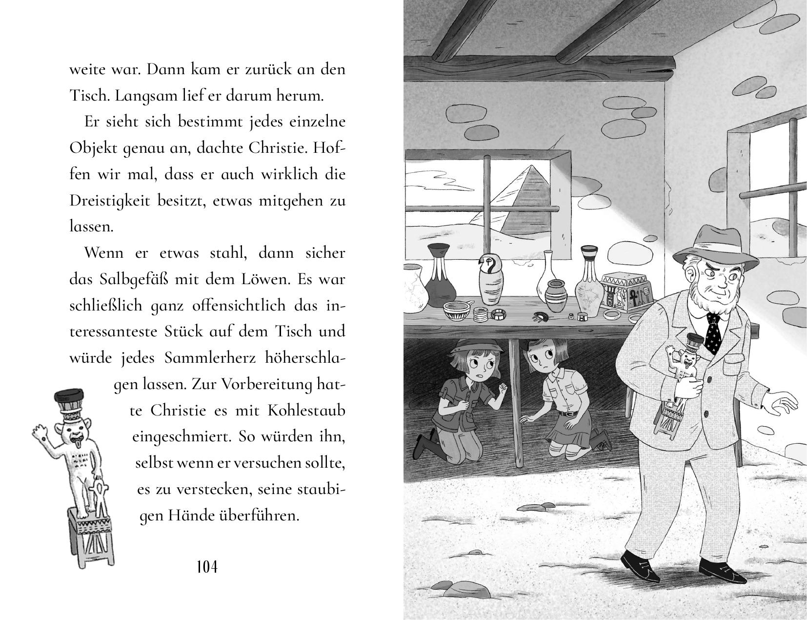 Christie und Agatha ermitteln in den PyramidenWährend der Ausgrabung eines ägyptischen Pharaonengrabes stoßen Christie und Agatha zusammen mit ihrem belgischen Freund auf ein Rätsel. Wertvolle Artefakte wurden gestohlen! Ein Dieb treibt sich auf der Grabungsstätte herum. Die Zeit, um den Fall zu lösen und Tutanchamuns Schätze wiederzufinden, ist knapp. Und wieder stellen die sehr unterschiedlichen Zwillinge Christie und Agatha fest, dass sie zusammen einfach unschlagbar sind.