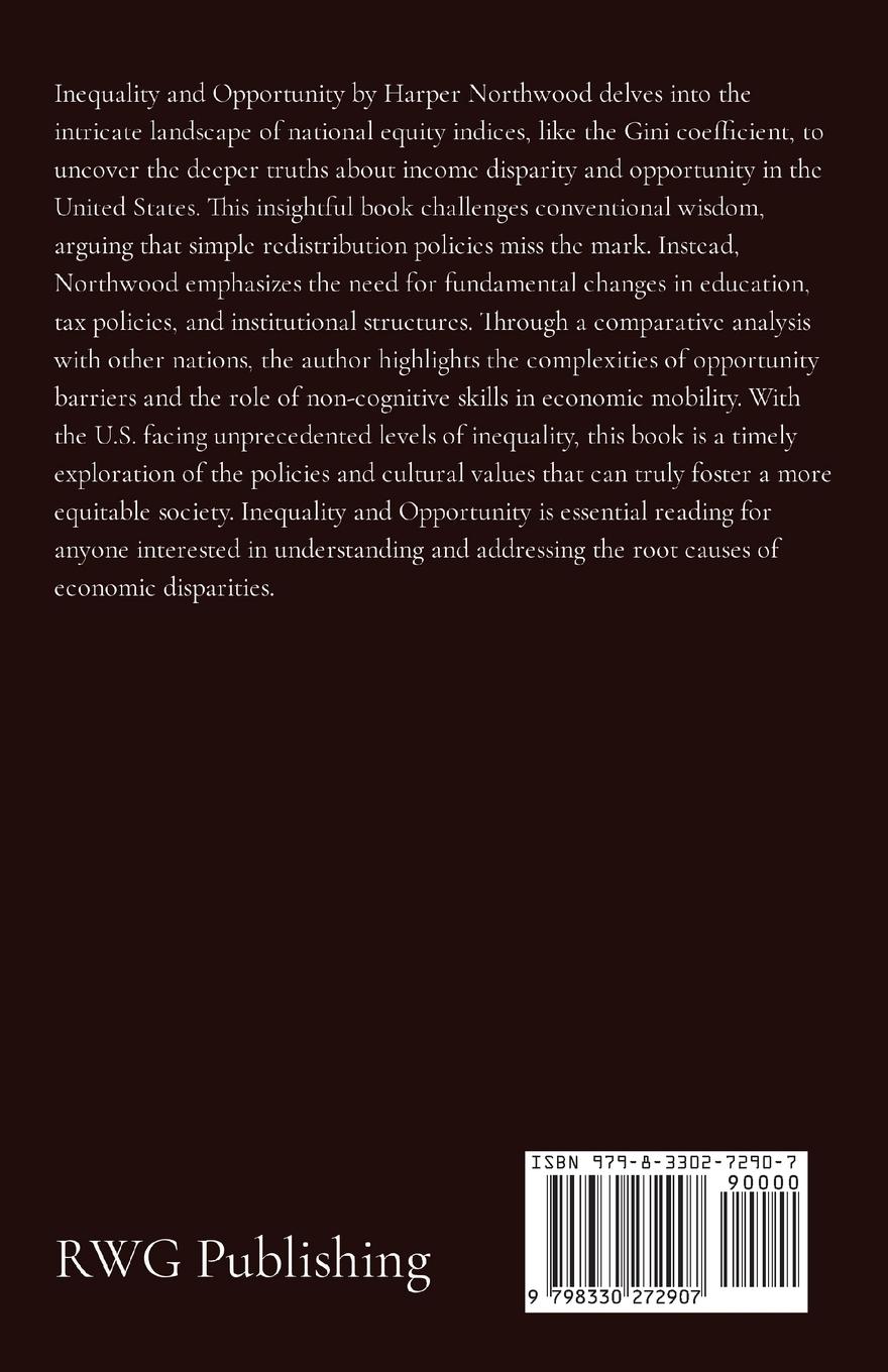 Inequality and Opportunity by Harper Northwood delves into the intricate landscape of national equity indices, like the Gini coefficient, to uncover the deeper truths about income disparity and opportunity in the United States. This insightful book challenges conventional wisdom, arguing that simple redistribution policies miss the mark. Instead, Northwood emphasizes the need for fundamental changes in education, tax policies, and institutional structures. Through a comparative analysis with other nations, the author highlights the complexities of opportunity barriers and the role of non-cognitive skills in economic mobility. With the U.S. facing unprecedented levels of inequality, this book is a timely exploration of the policies and cultural values that can truly foster a more equitable society. Inequality and Opportunity is essential reading for anyone interested in understanding and addressing the root causes of economic disparities.