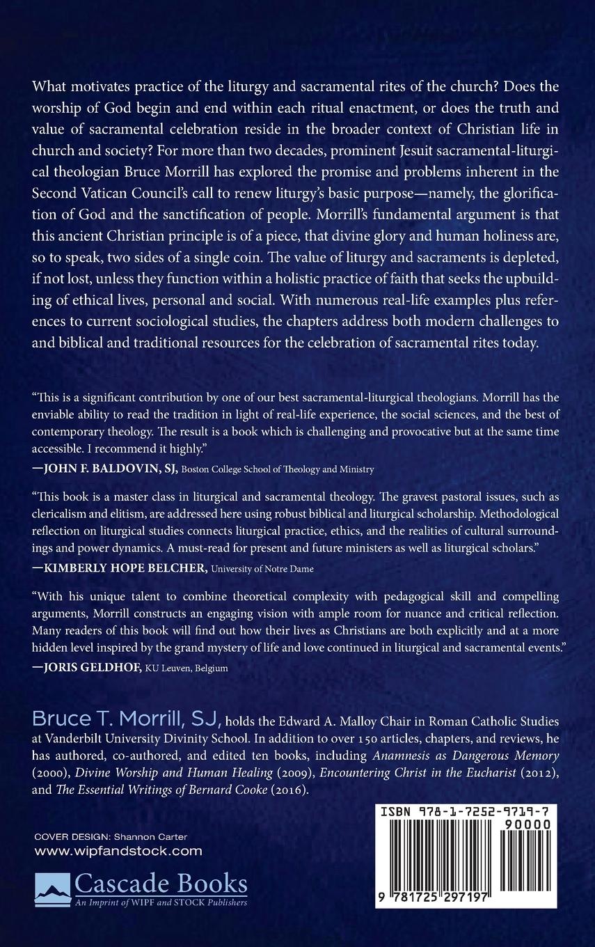 What motivates practice of the liturgy and sacramental rites of the church? Does the worship of God begin and end within each ritual enactment, or does the truth and value of sacramental celebration reside in the broader context of Christian life in church and society? For more than two decades, prominent Jesuit sacramental-liturgical theologian Bruce Morrill has explored the promise and problems inherent in the Second Vatican Council's call to renew liturgy's basic purpose--namely, the glorification of God and the sanctification of people. Morrill's fundamental argument is that this ancient Christian principle is of a piece, that divine glory and human holiness are, so to speak, two sides of a single coin. The value of liturgy and sacraments is depleted, if not lost, unless they function within a holistic practice of faith that seeks the upbuilding of ethical lives, personal and social. With numerous real-life examples plus references to current sociological studies, the chapters address both modern challenges to and biblical and traditional resources for the celebration of sacramental rites today.