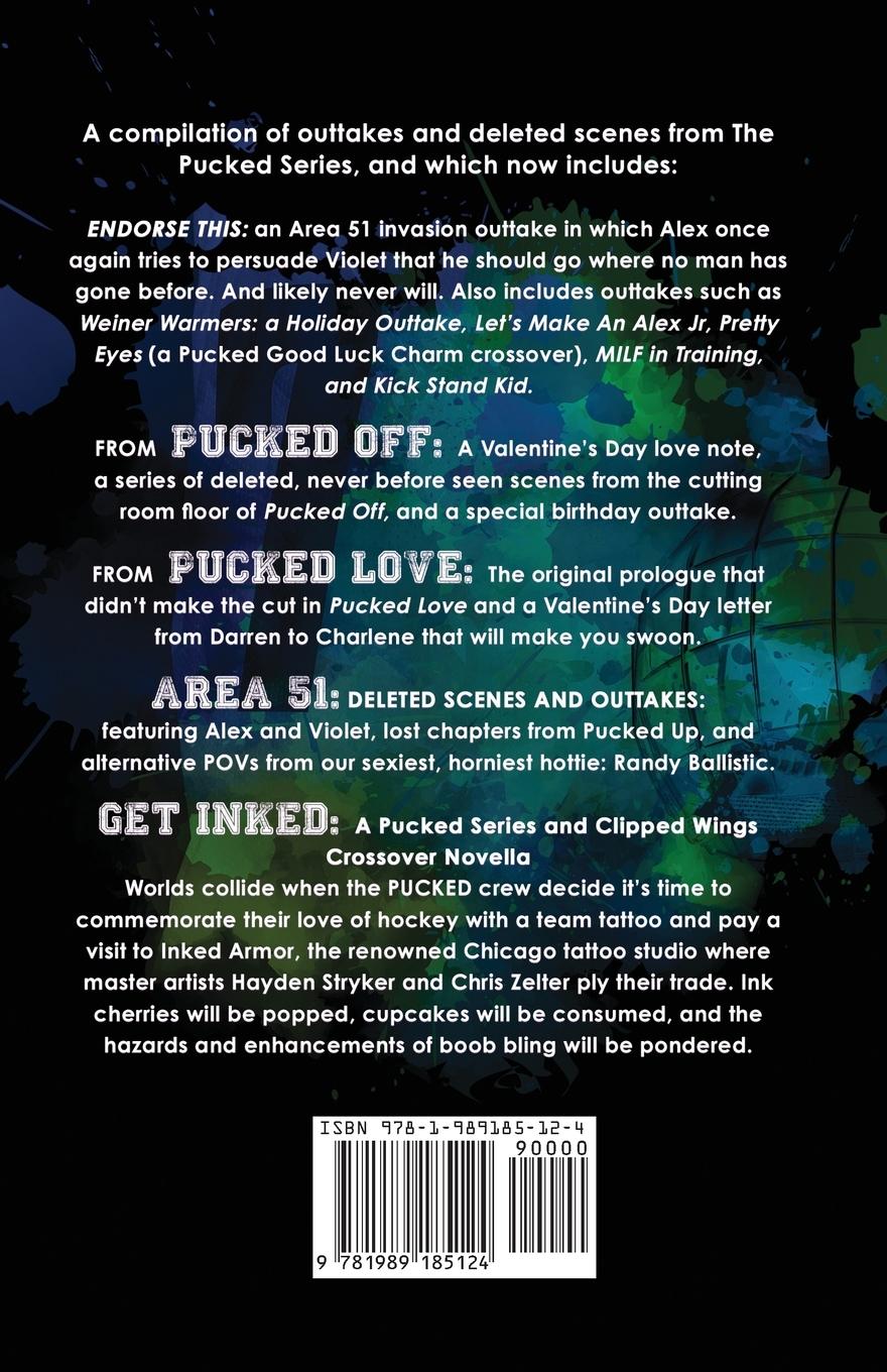 An extensive compilation of outtakes, deleted scenes and a crossover novella from The Pucked Series, which now includes: ENDORSE THIS: An Area 51 invasion outtake in which Alex once again tries to persuade Violet that he should go where no man has gone before. And likely never will. Also includes Alex & Violet inspired outtakes such as Weiner Warmers: a Holiday Outtake, Let's Make An Alex Jr, Pretty Eyes (a Pucked-Good Luck Charm crossover), MILF in Training, and Kick Stand Kid. From PUCKED OFF A Valentine's Day love note, a series of deleted, never before seen scenes from the cutting room floor of Pucked Off and a special birthday outtake. From PUCKED LOVE The original Prologue that didn't make the cut in Pucked Love and a Valentine's Day letter from Darren to Charlene guaranteed make you swoon. Area 51: Deleted Scenes and Outtakes Originally published in 2016, this compilation of outtakes and deleted scenes features Alex and Violet ridiculousness, lost chapters from Pucked Up, and alternative POVs from our sexiest, horniest hottie: Randy Ballistic. Get Inked: A Pucked Series and Clipped Wings Crossover Novella Worlds collide when the PUCKED crew decide it's time to commemorate their love of hockey with a team tattoo and pay a visit to Inked Armor, the renowned Chicago tattoo studio where master artists Hayden Stryker and Chris Zelter ply their trade. Ink cherries will be popped, cupcakes will be consumed, and the hazards and enhancements of boob bling will be pondered. NOTE: * Pucks & Penalties contains over 90 000 words in outtakes and deleted scenes, as well as the full Get Inked novella. Pucks & Penalties was previously only available at signings.