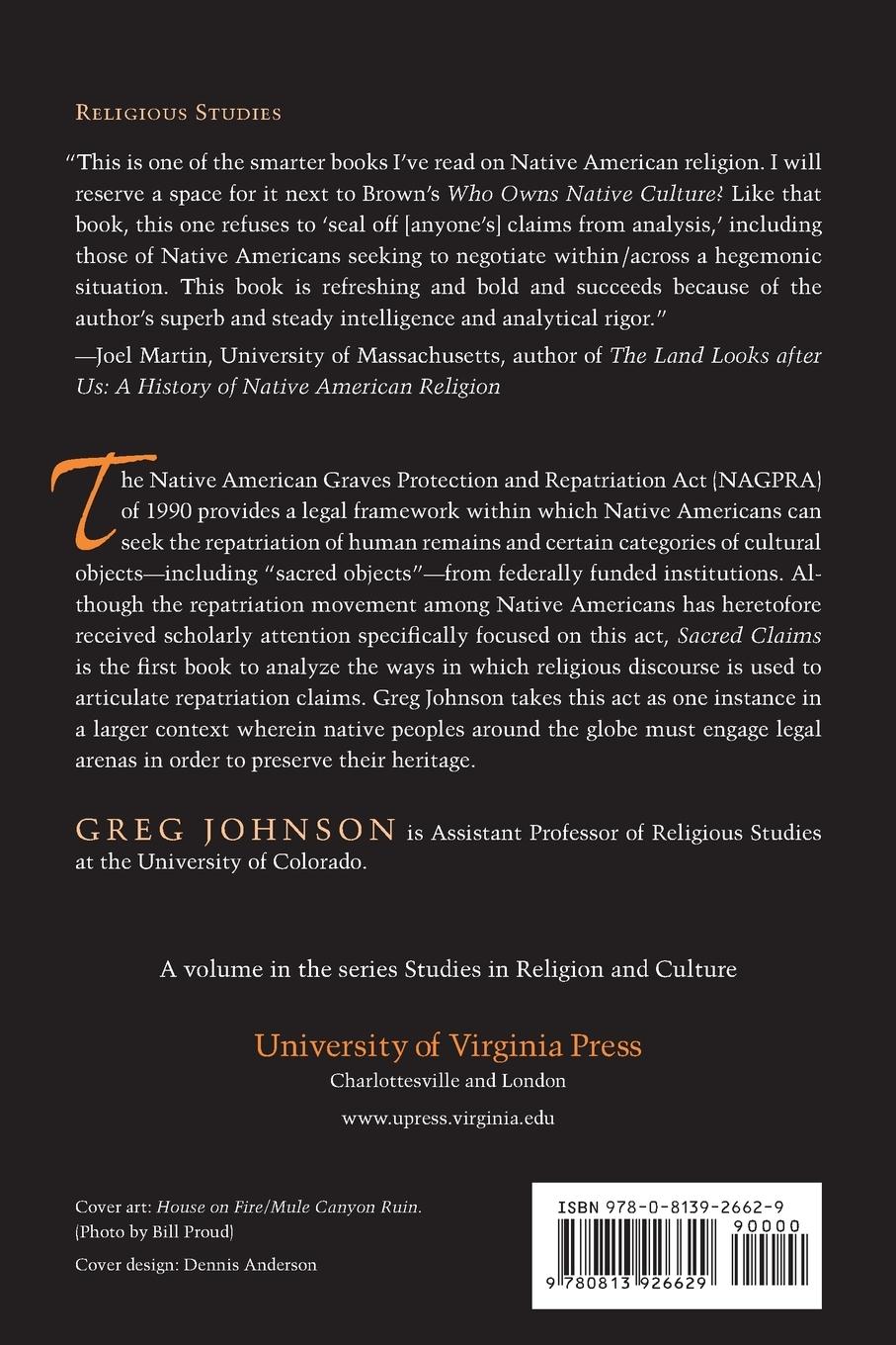 The Native American Graves Protection and Repatriation Act (NAGPRA) of 1990 provides a legal framework within which Native Americans can seek the repatriation of human remains and certain categories of cultural objects--including "sacred objects"--from federally funded institutions. Although the repatriation movement among Native Americans has heretofore received scholarly attention specifically focused on this act, Sacred Claims is the first book to analyze the ways in which religious discourse is used to articulate repatriation claims. Greg Johnson takes this act as one instance in a larger context wherein native peoples around the globe must engage legal arenas in order to preserve their heritage. Methodologically, Sacred Claims is based on a close reading of government documents concerning the law and participant observation in a variety of NAGPRA-related events and provides the background and legislative history of the law, the life history of the act's axial term cultural affiliation (the most delicate and least understood aspect of NAGPRA), and several case studies of highly visible and contentious Hawaiian repatriation disputes. Johnson then moves beyond the strictly legal context to analyze NAGPRA discourse in the public realm. He concludes by way of a theoretical treatment of the foregoing issues, arguing that religious language was the chief means by which native representatives ultimately persuaded non-native audiences of the applicability of widely-held human rights principles to their cultural remains. Theorizing modes of cultural vitality in the repatriation context, Johnson argues that living tradition is not found in the objects themselves but is instead located in struggles over them. With the law on the brink of receiving crucial tests, and repatriation issues making daily headlines in Native American and Hawaiian news, Sacred Claims is a timely and necessary examination of these issues.
