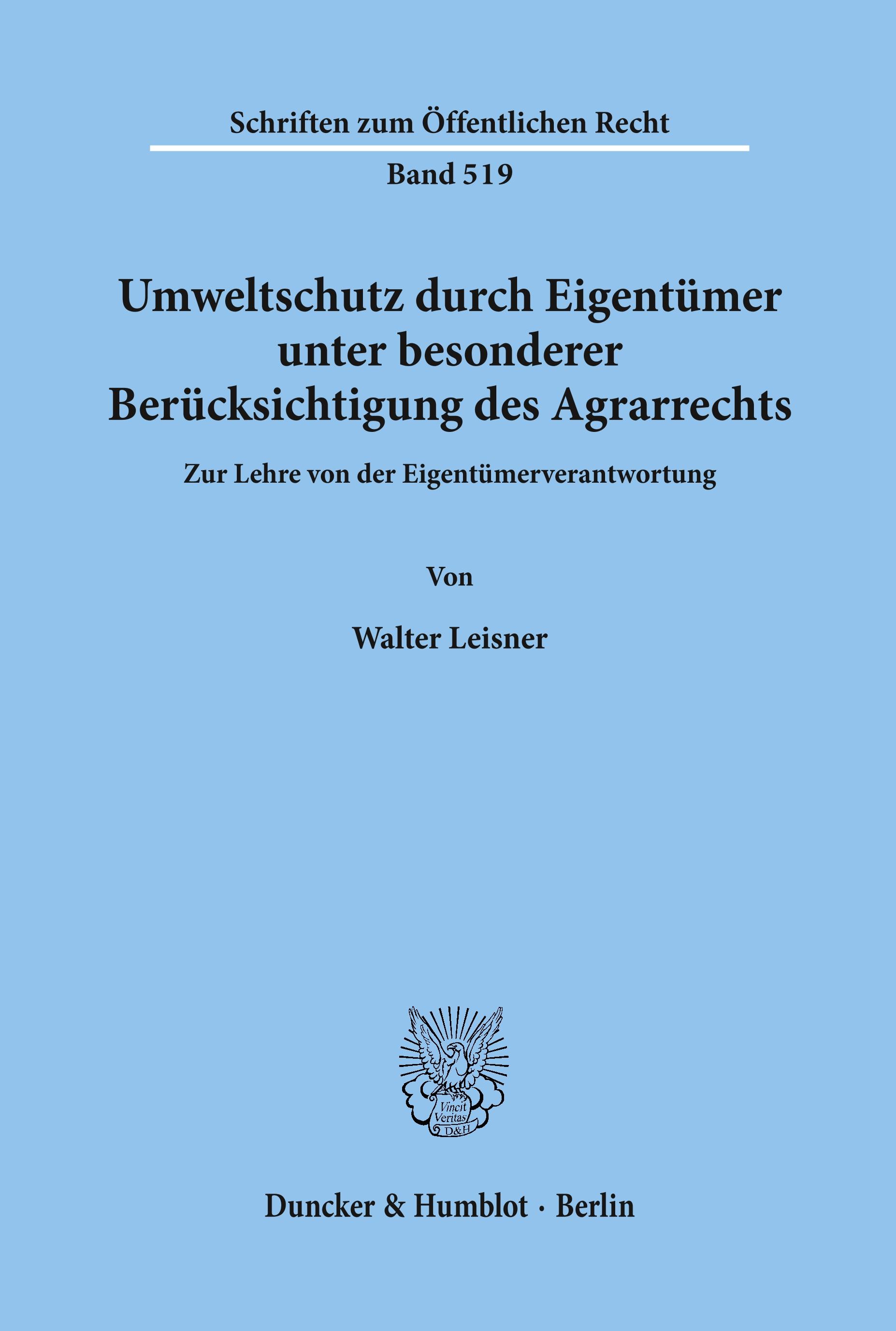 Umweltschutz durch Eigentümer, unter besonderer Berücksichtigung des Agrarrechts.