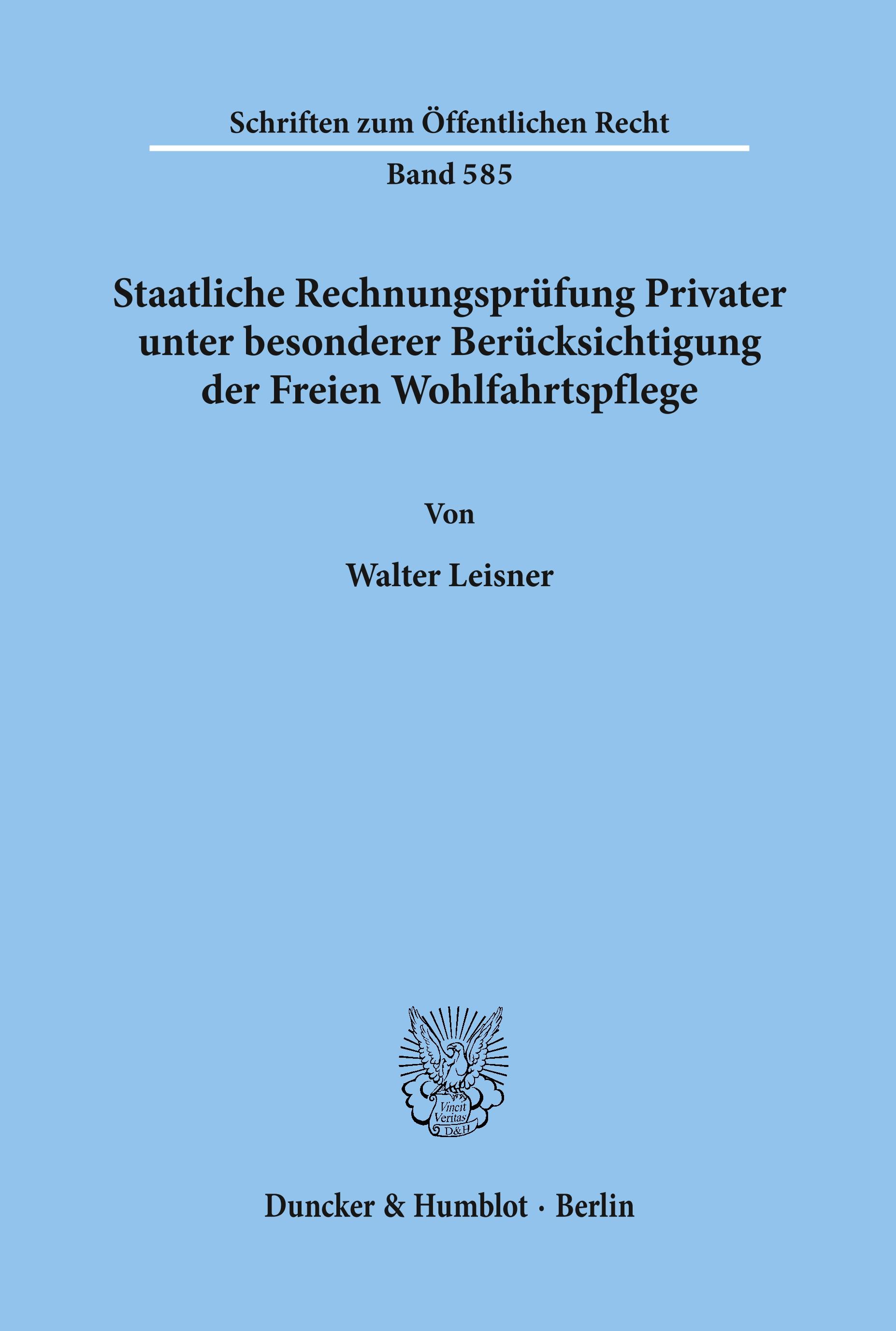Staatliche Rechnungsprüfung Privater, unter besonderer Berücksichtigung der Freien Wohlfahrtspflege.