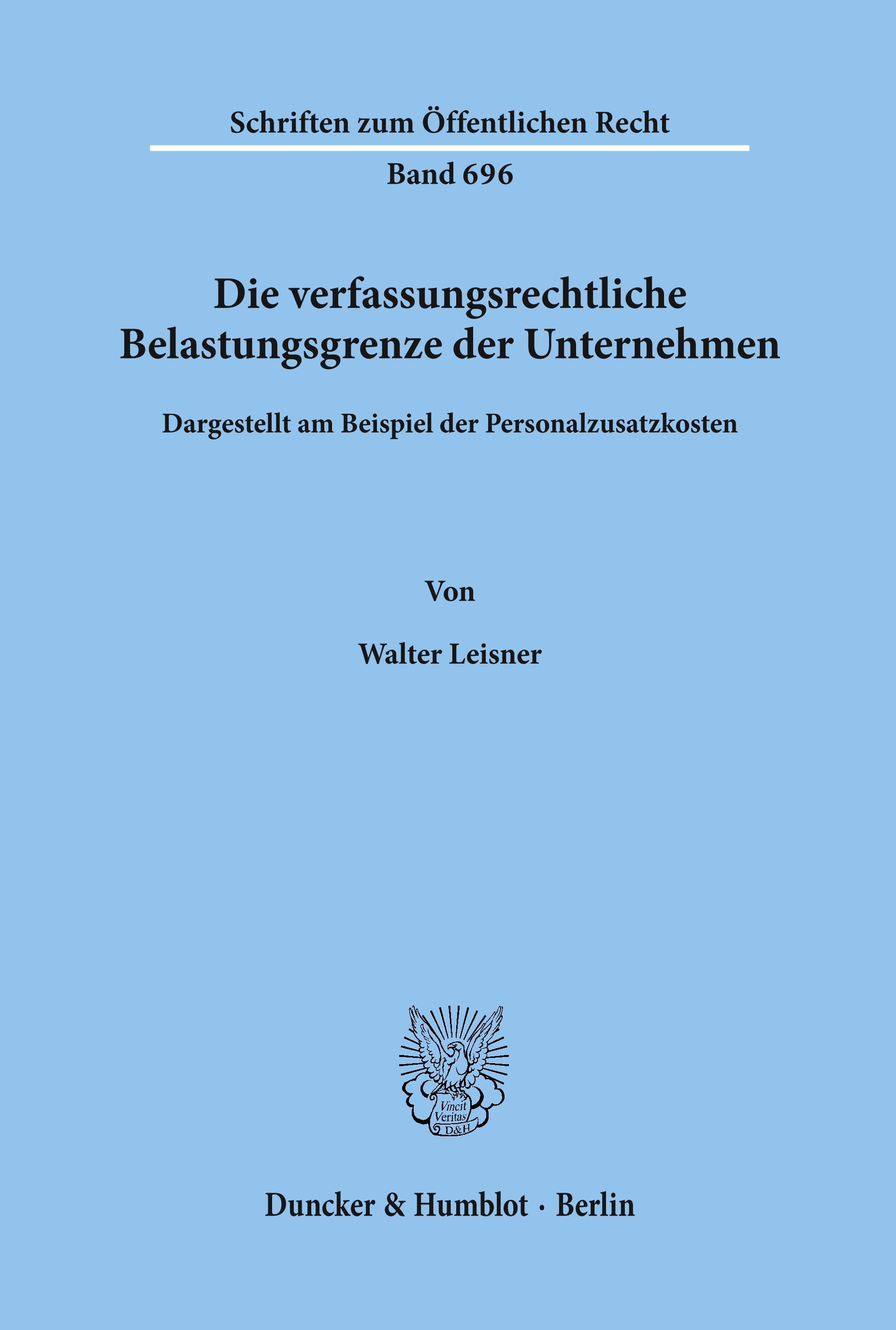 Die verfassungsrechtliche Belastungsgrenze der Unternehmen,