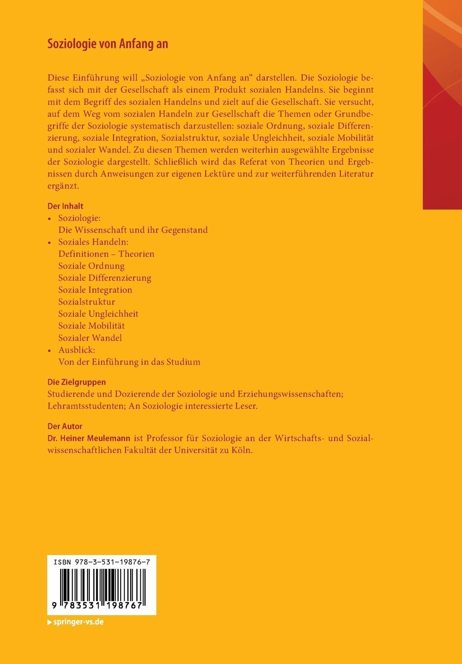 Diese Einführung will "Soziologie von Anfang an" darstellen. Die Soziologie befasst sich mit der Gesellschaft als einem Produkt sozialen Handelns. Sie beginnt mit dem Begriff des sozialen Handelns und zielt auf die Gesellschaft. Sie versucht, auf dem Weg vom sozialen Handeln zur Gesellschaft die Themen oder Grundbegriffe der Soziologie systematisch darzustellen: soziale Ordnung, soziale Differenzierung, soziale Integration, Sozialstruktur, soziale Ungleichheit, soziale Mobilität und sozialer Wandel. Zu diesen Themen werden weiterhin ausgewählte Ergebnisse der Soziologie dargestellt. Schließlich wird das Referat von Theorien und Ergebnissen durch Anweisungen zur eigenen Lektüre und zur weiterführenden Literatur ergänzt.