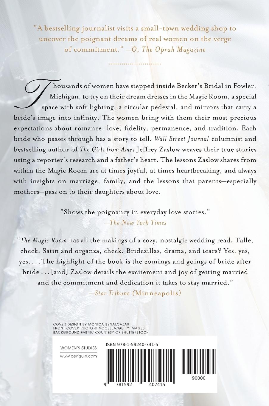 The New York Times bestselling author of The Girls from Ames shares an intimate look at a small-town bridal shop, its multigenerational female owners, and the love between parents and daughters as they prepare for their wedding day.Thousands of women have stepped inside Becker's Bridal, in Fowler, Michigan, to try on their dream dresses in the Magic Room, a special space with soft lighting, a circular pedestal, and mirrors that carry a bride's image into infinity. The women bring with them their most precious expectations about romance, love, fidelity, permanence, and tradition. Each bride who passes through has a story to tell-one that carried her there, to that dress, that room, that moment. Illuminating the poignant aspects of a woman's journey to the altar, The Magic Room tells the stories of memorable women on the brink of commitment. Run by the same family for four generations, Becker's has witnessed transformations in how America views the institution of marriage: some of the shop's clientele are becoming stepmothers, some are older brides, some are pregnant. Shop owner Shelley has a special affection for all the brides, hoping their journeys will be easier than hers. Jeffrey Zaslow weaves their true stories using a reporter's research and a father's heart.The lessons Zaslow shares from within the Magic Room are at times joyful, at times heartbreaking, and always with insight on marriage, family, and the lessons that parents-especially mothers-pass on to their daughters about love. Weaving together secrets, memories, and family tales, The Magic Room explores the emotional lives of women in the twenty-first century.