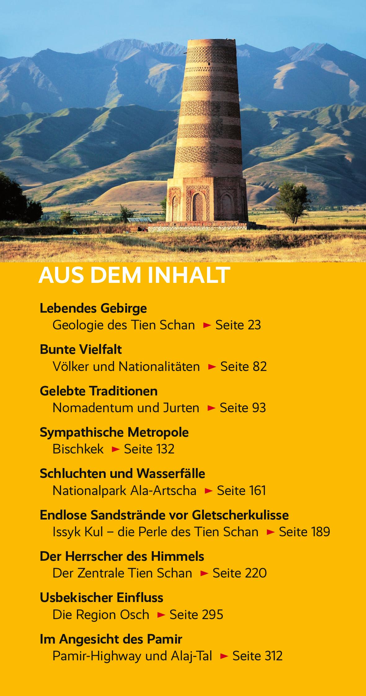 Untertitel: | Zu den Gipfeln von Tien Schan und Pamir. Bischkek, Ala Artscha, Issyk Kul, Naryn, Osch und Alaj-Tal |